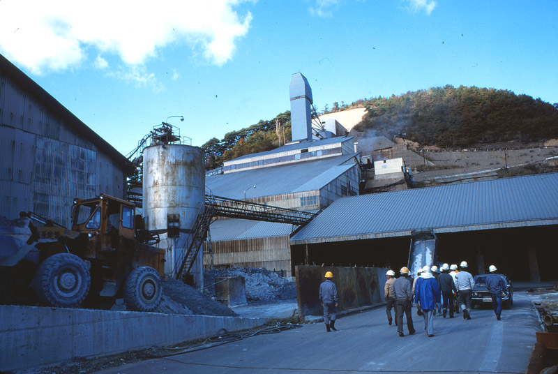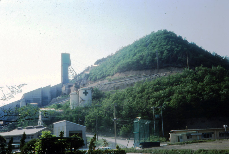 釈迦内鉱山の選鉱場全景と第1竪坑