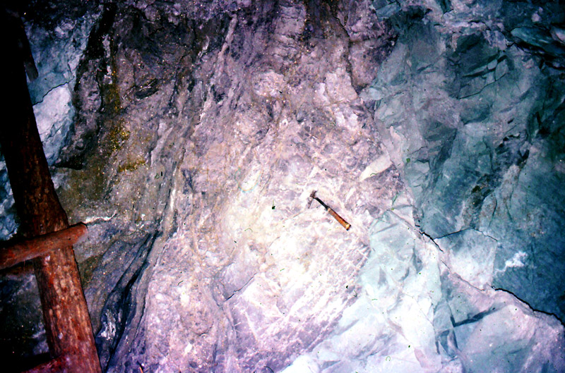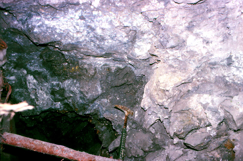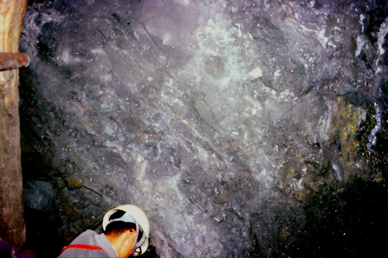 塊状緻密質黒鉱とそれを覆う上盤粘土