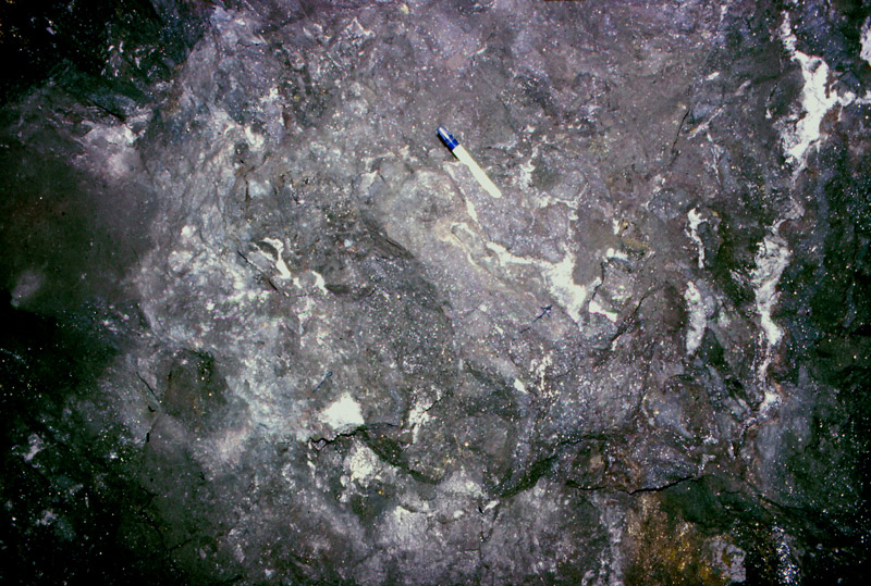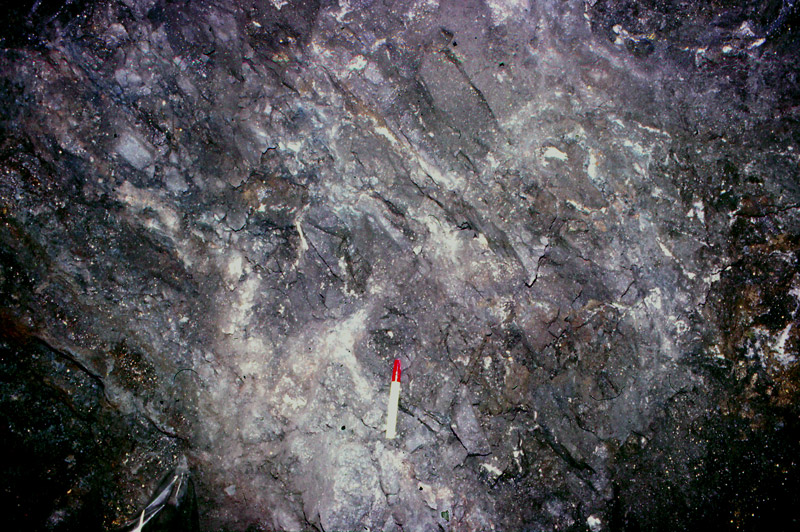 第11鉱体上部黒鉱中の閃亜鉛鉱や方鉛鉱に