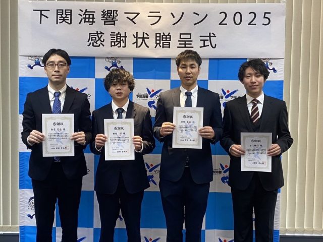2025年11月に開催された「下関海響マラソン」。 そのレース中、心肺停止状態に陥ったランナーの方に対し、適切な救命処置を行って一命を取り留める手助けをしたとして、当科出身の白石 宏造(しらいし こうぞう)先生(済生会下関総合病院)が、下関市より感謝状を贈られました。