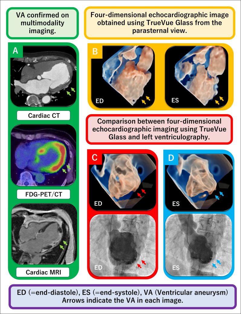 本論文は、最新の超音波技術である「TrueVue Glass」を用いて、心臓サルコイドーシスに伴う心室瘤を鮮明に可視化した症例報告です。