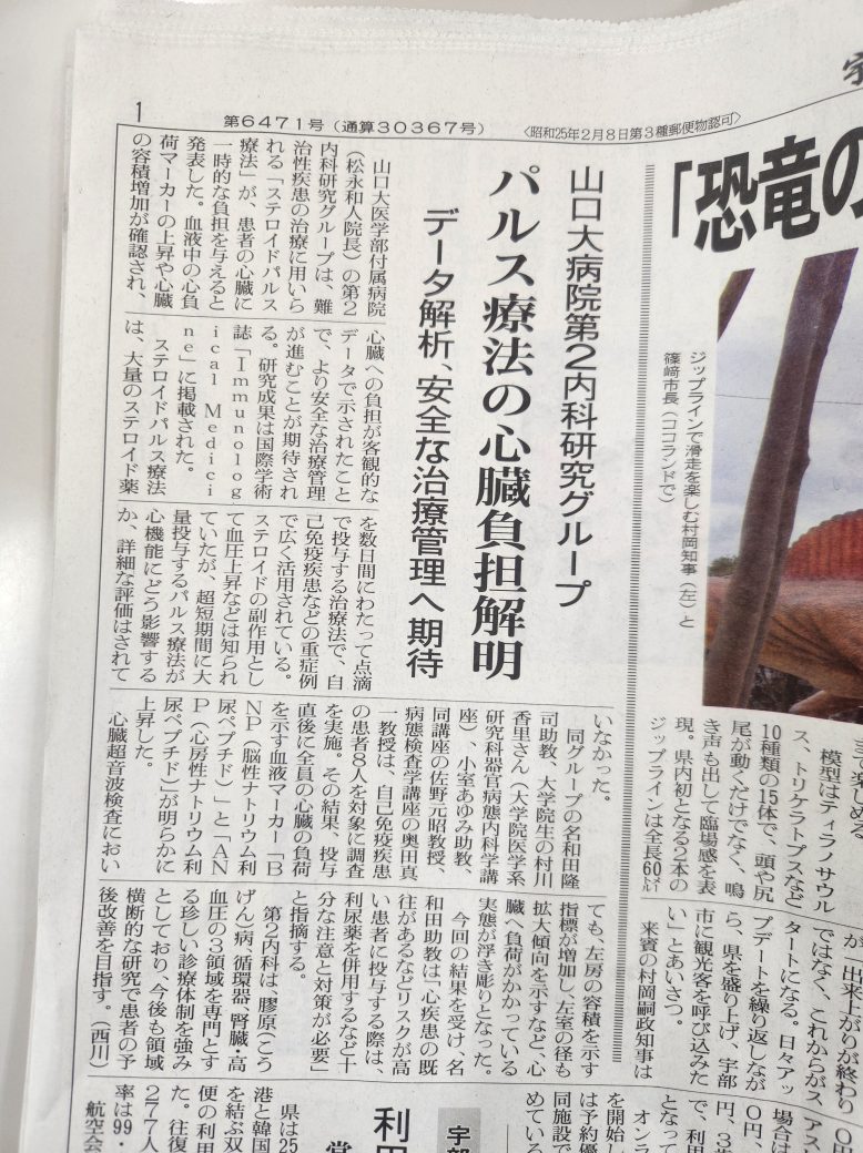 以前、本ブログでも論文発表の際にお伝えした「ステロイドパルス療法における心臓への影響」についての内容です。