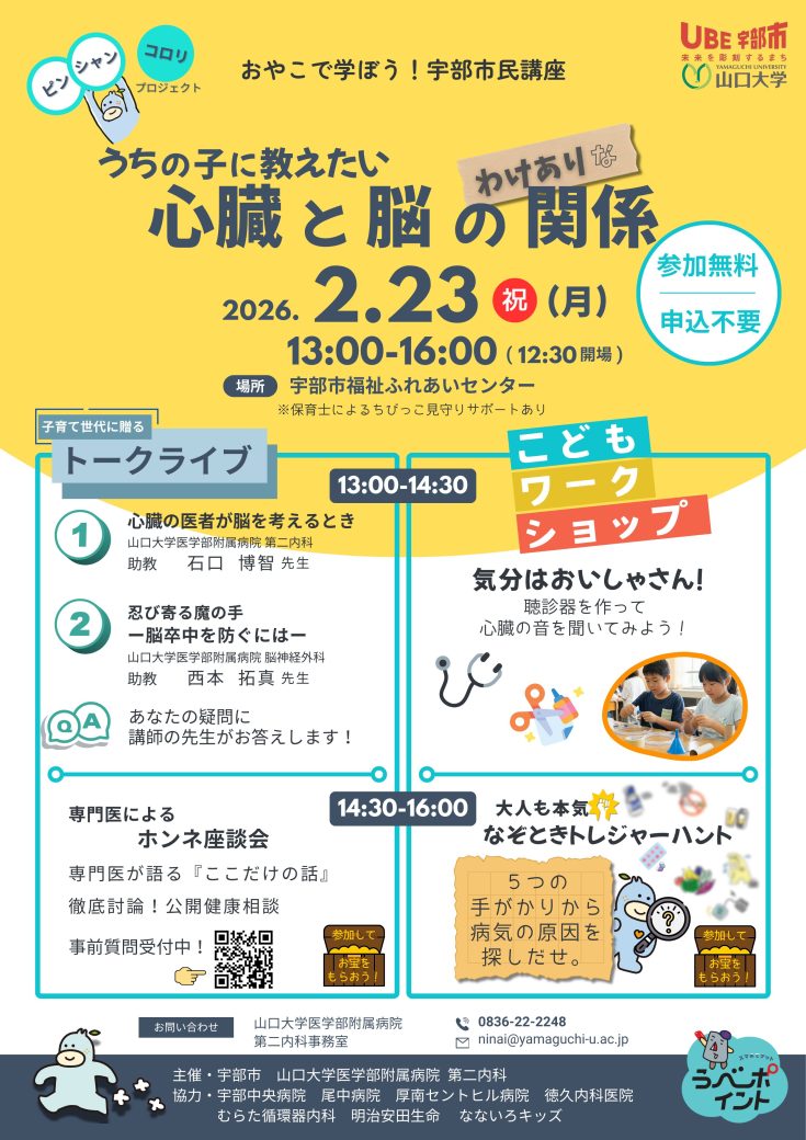 来たる2026年2月23日(月・祝)、宇部市福祉ふれあいセンターにて、「おやこで学ぼう!宇部市民講座」を開催します!今回のテーマは