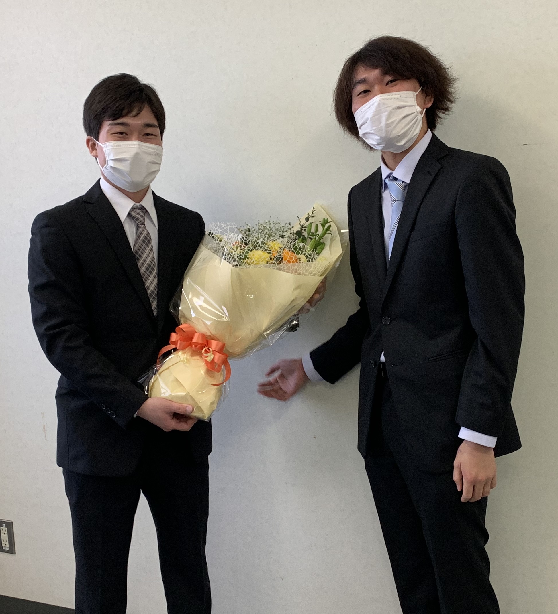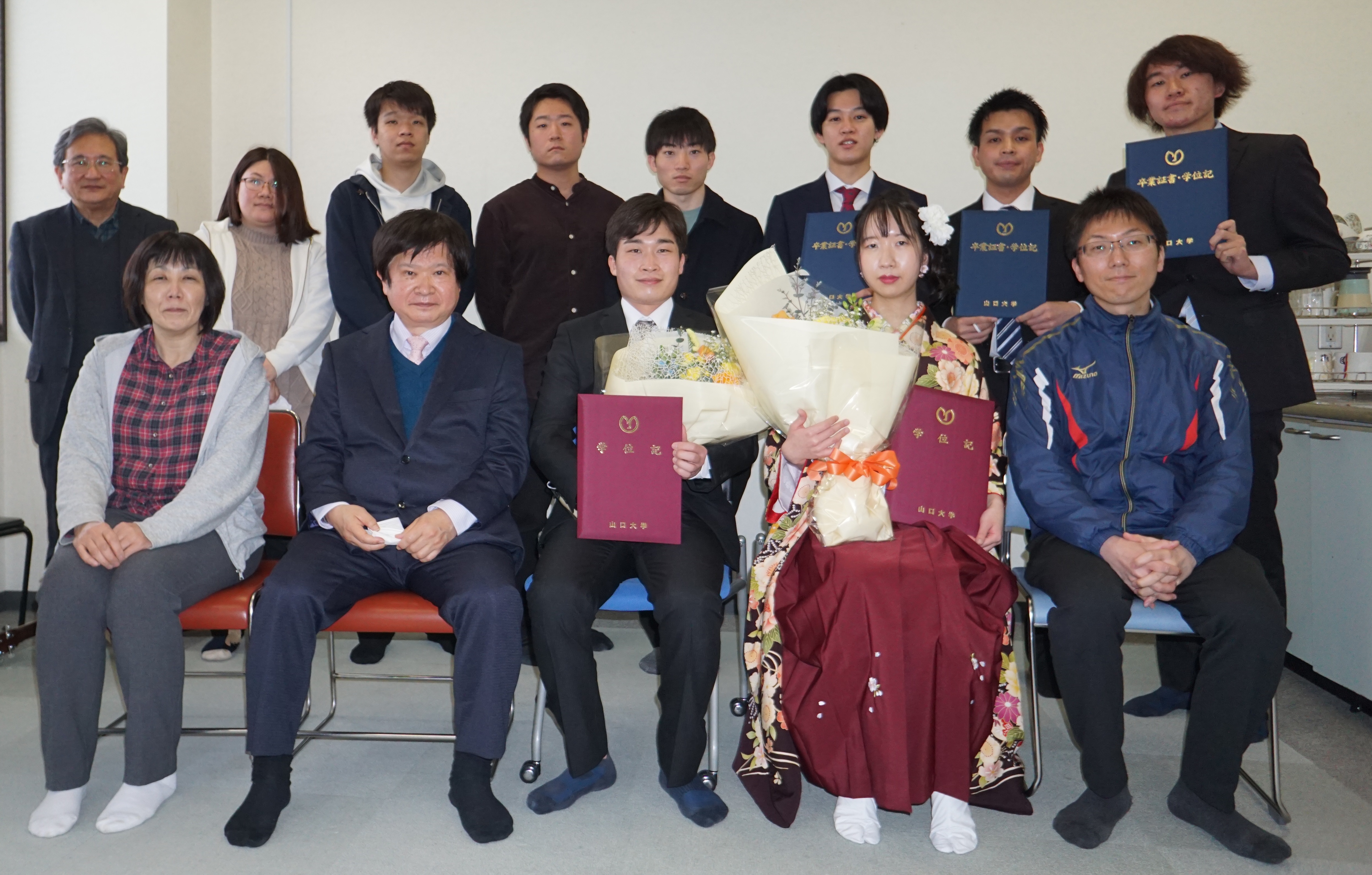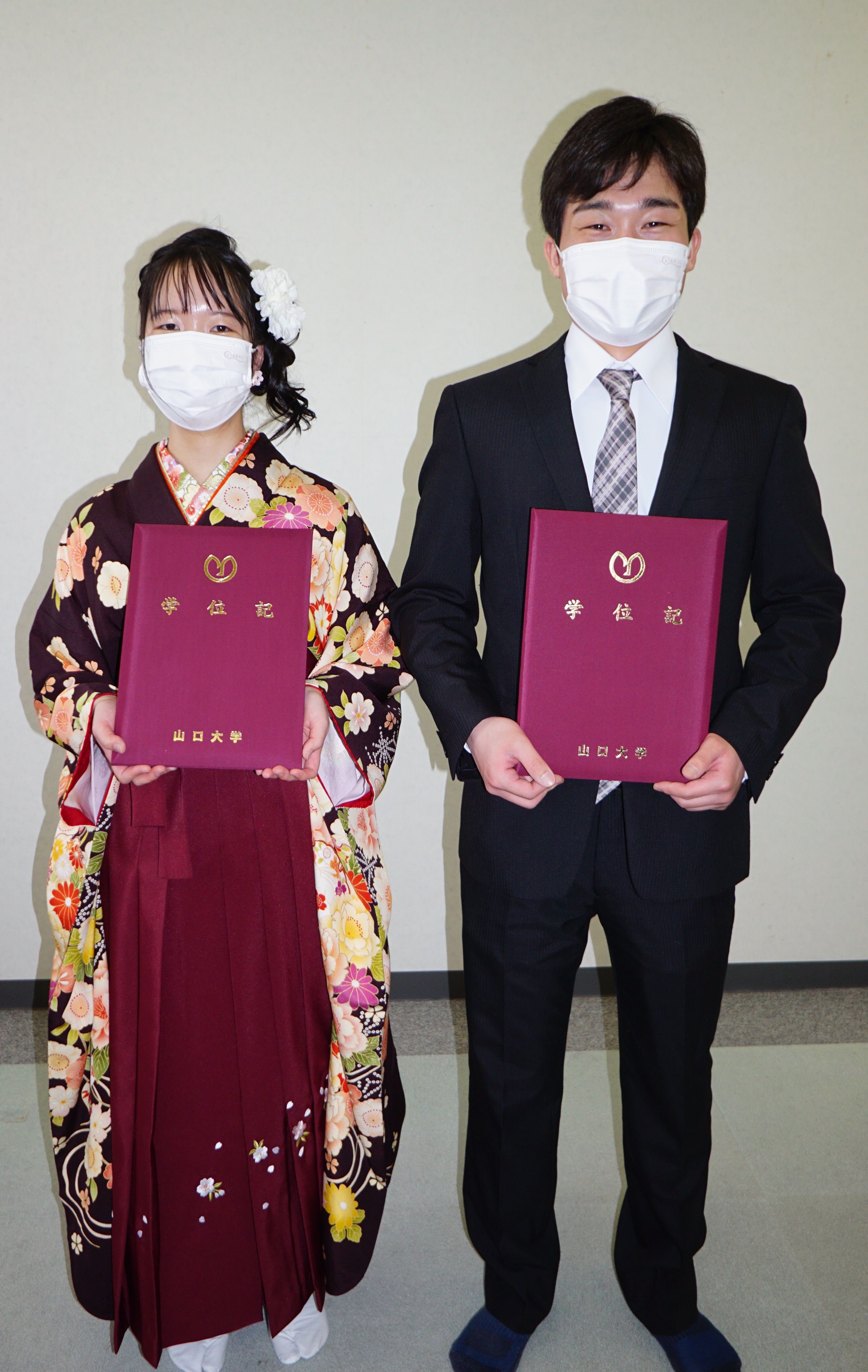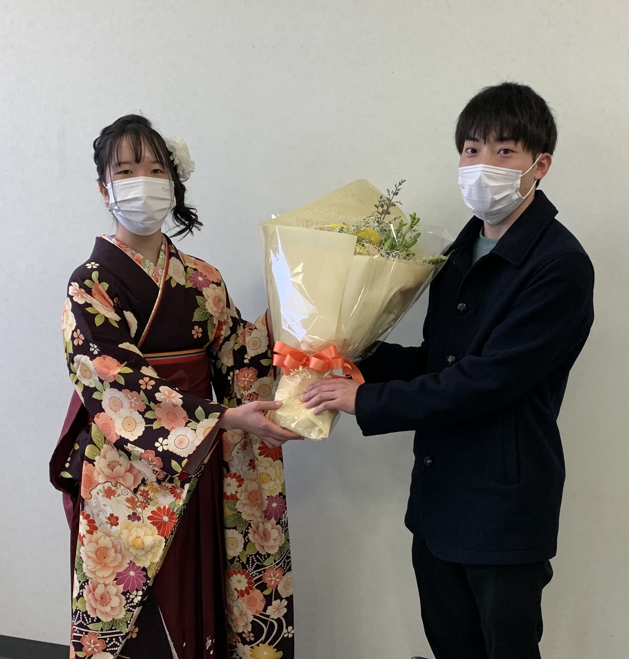 今年卒業する氏家君と小牟田さん。修了証書と一緒に一枚。