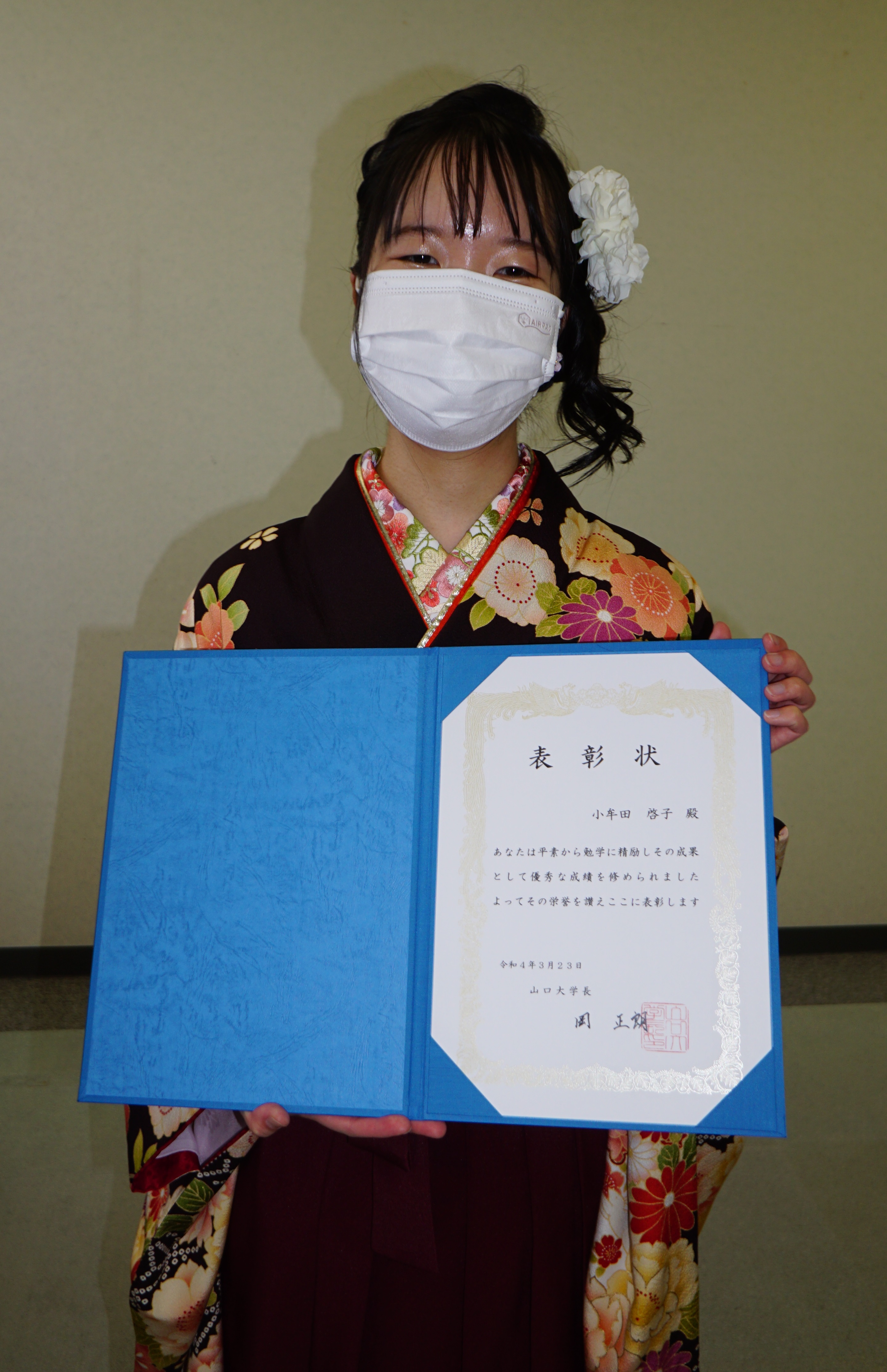 小牟田さんは学長賞を受賞しました!