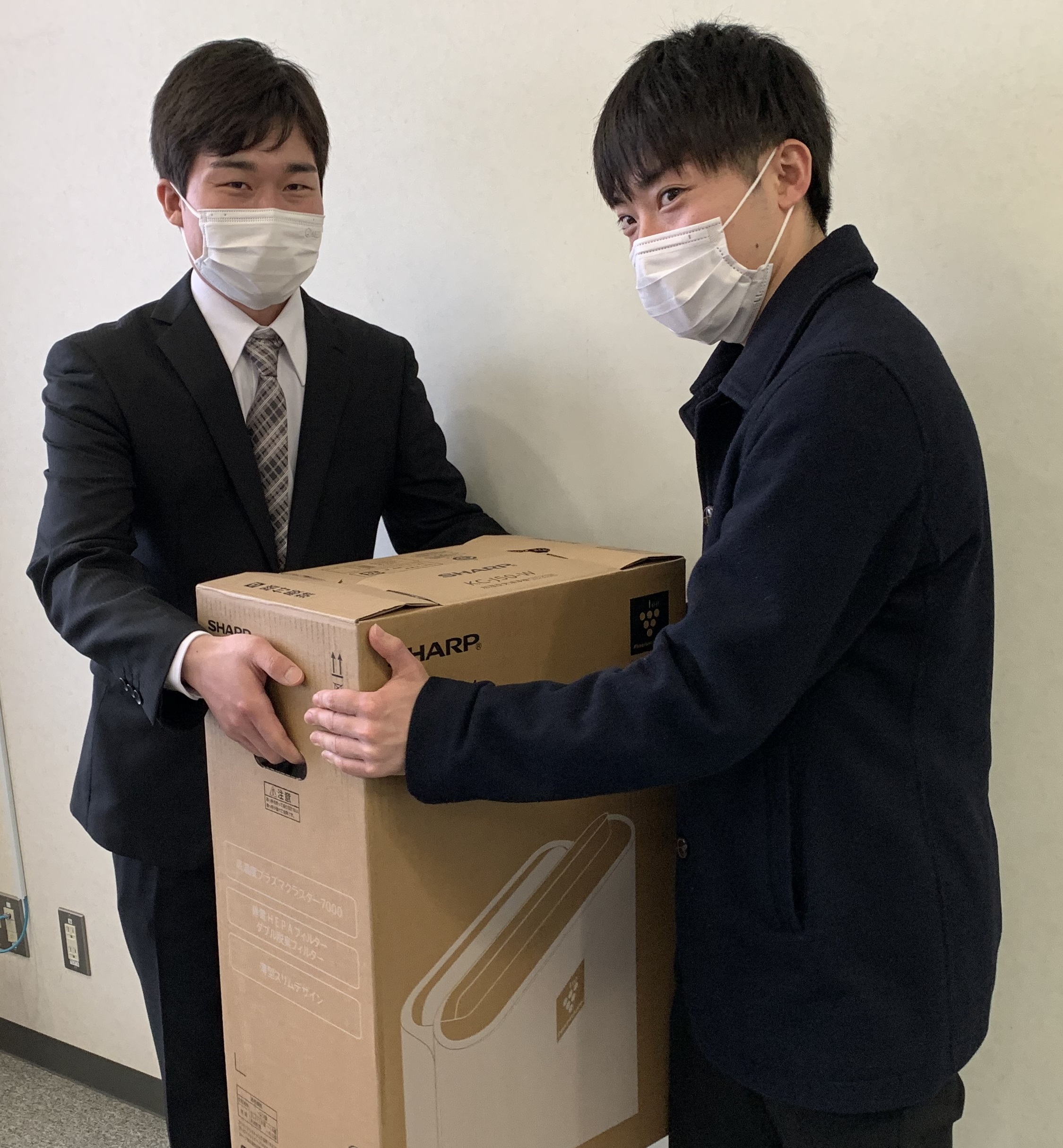卒業生の二人から空気清浄機をいただきました!