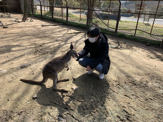 カンガルー初めて触りました笑めっちゃかわいい!!
