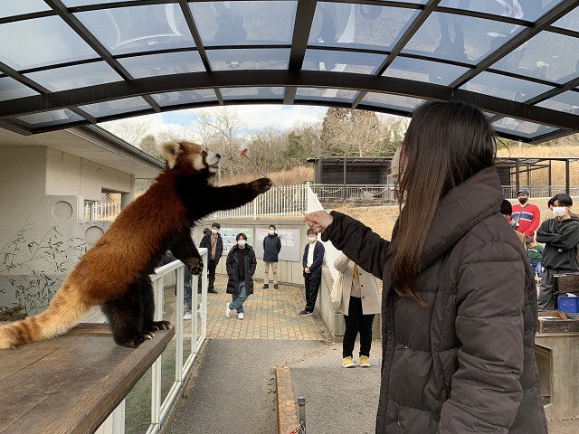 レッサーパンダのエサやりをみんなで体験しました!