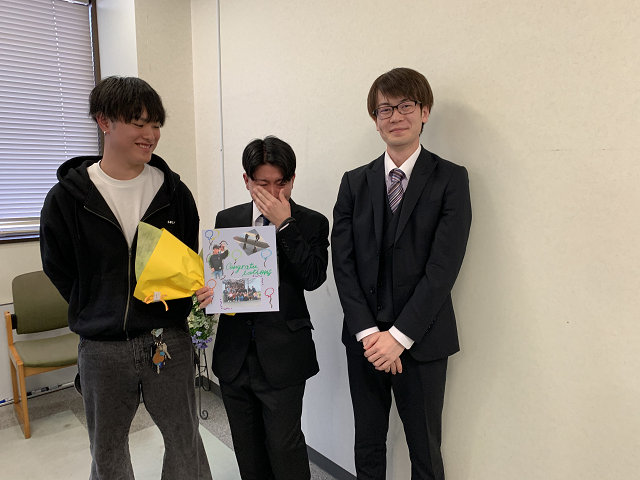 M2の先輩方と内海さんへ色紙とプレゼントを贈りました