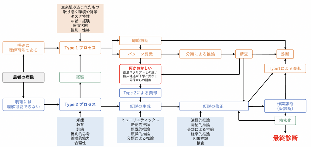 この事例のように、実臨床ではType 1とType 2をいったりきたりしながら臨床推論を行なっていきます。この過程が診断の質を高めるために重要とされています。