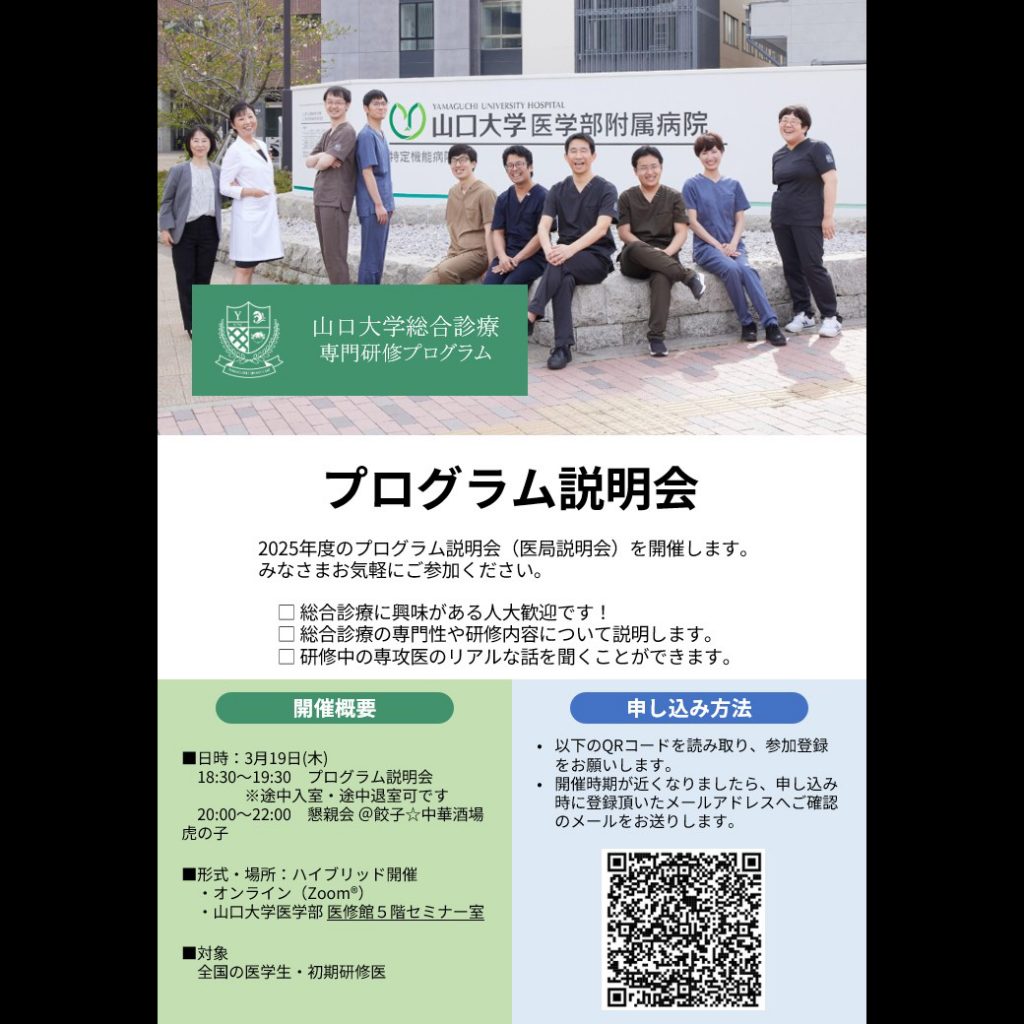 山口大学総合診療専門研修プログラムのプログラム説明会を開催します。