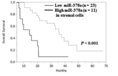 図1:がん組織の中でも、癌間質細胞に含まれるmiR-378aの量が少ない症例では、がん免疫化学療法の効果が高い