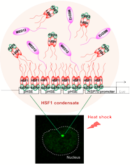 細胞は熱ストレスなどのタンパク質毒性ストレスにさらされると、熱ショックタンパク質群(HSPs)を誘導することで適応する。この適応機構は熱ショック応答と呼ばれ、熱ショック転写因子HSF1によって主に転写レベルで制御される。活性化されたHSF1はHSP遺伝子プロモーターに存在する熱ショック応答配列(HSE)に結合し、コアクチベーターとして働くメディエーターを含む転写開始前複合体を集積させることで転写を促進する。一般に、転写因子及びコアクチベーターは液―液相分離によってプロモーター上に凝縮体を形成すると考えられている。しかし、HSP遺伝子プロモーター上でも同様かどうかについては、凝縮体が微小であるために十分な解析ができていない。