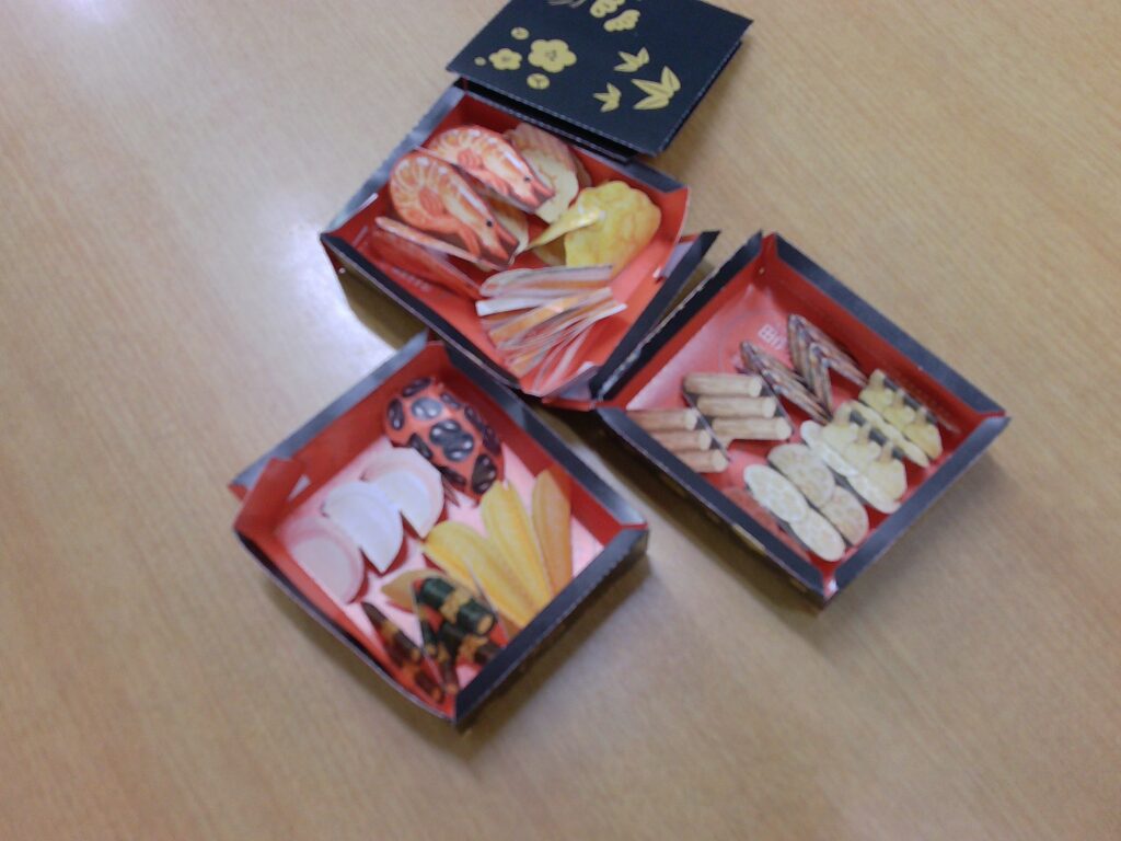 「いただきます.info」様よりご提供いただいたペーパークラフトを使って、おせち作りを行いました。