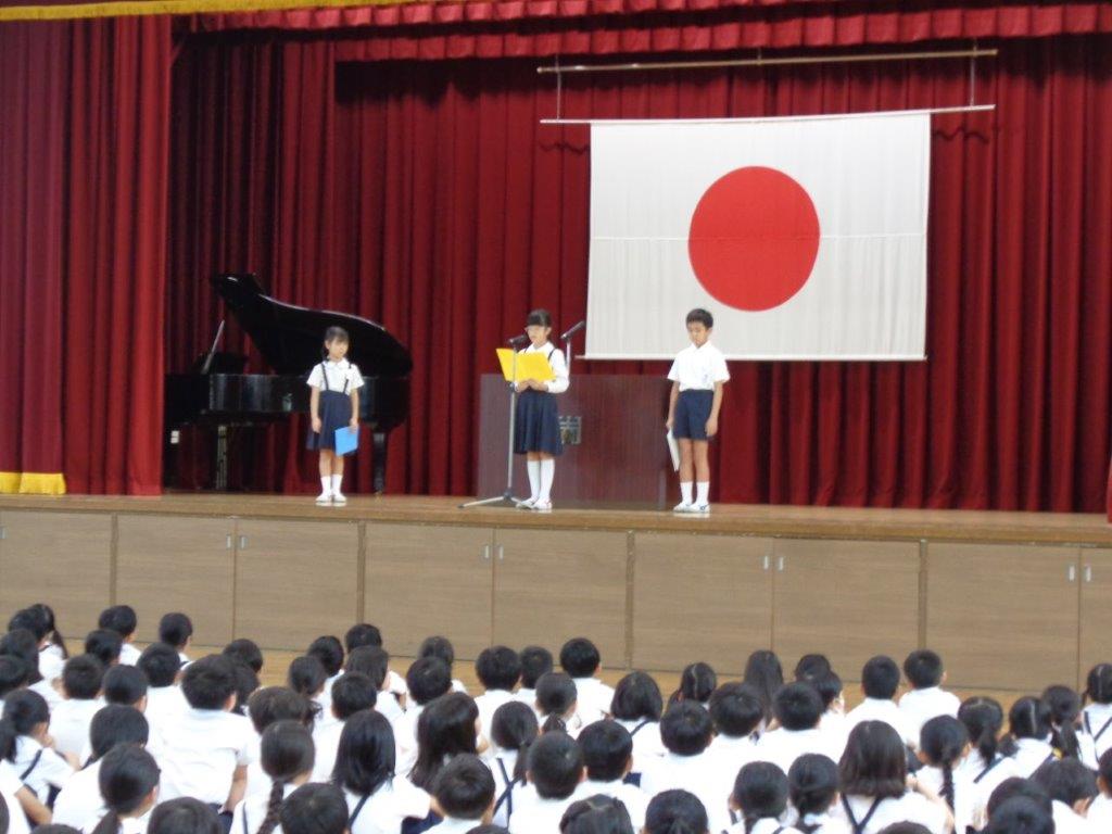 9月24日から、後期の学習が始まりました。始業式では,代表児童が後期に頑張りたいことを発表しました。来週からは教育実習が始まります。早速,子どもたちにとって新たな出会いが待っています。