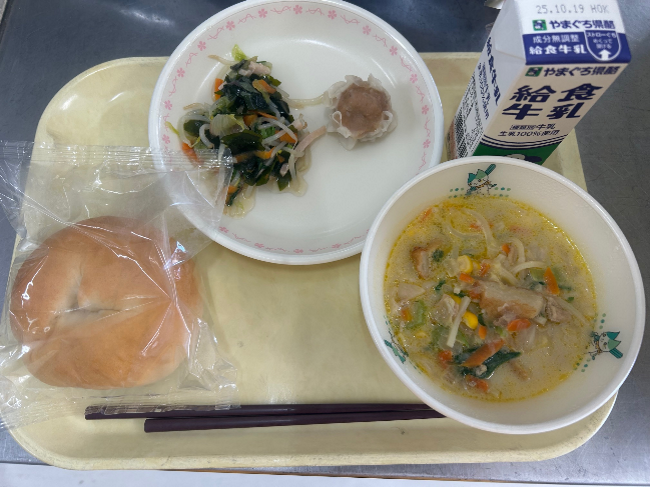 ~小丸パン しゅうまい 海藻サラダ ミニちゃんぽん麺 牛乳~