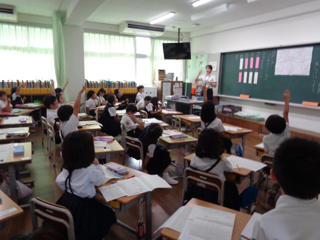 9月29日から、後期教育実習が始まりました。今年は、57名の学生が来ています。始めの一週間は主に本校教員の授業を参観し、二週目からは実地授業に入りました。今週は、大学の先生方も参観に来られ査定授業が行われました。実習生は、授業を経験するごとに授業マネジメントや児童への関わり方が上達しています。
