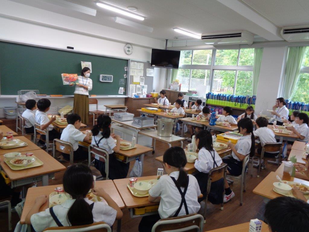 10月19日に、図書ボランティアの皆様による「読み聞かせ」がありました。3年生以上の学級には給食時間に来ていただいています。昼休みは、図書室での読み聞かせに1・2年生がたくさん訪れます。