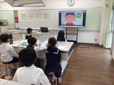 2年生の食育の授業で、株式会社ロッテ様から提供された教材『めざせ!嚙むことマスター』を使用し、よく嚙んで食べる大切さと正しい嚙み方について学習しました。