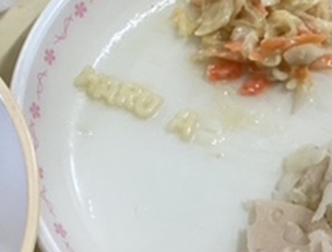 教室を覗くと、「見て!自分の名前が完成したよ!」「『K』が見つからない!!」と、まるで宝探しのように器の中をのぞき込みながら、楽しそうに食べる姿が印象的でした。