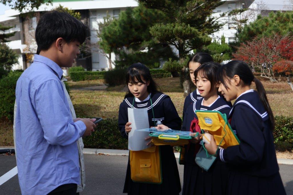 図書館を見学した班や教育学部の学部長室でインタビューをした班,キャンパス内で学生さんにインタビューをした班もありました。