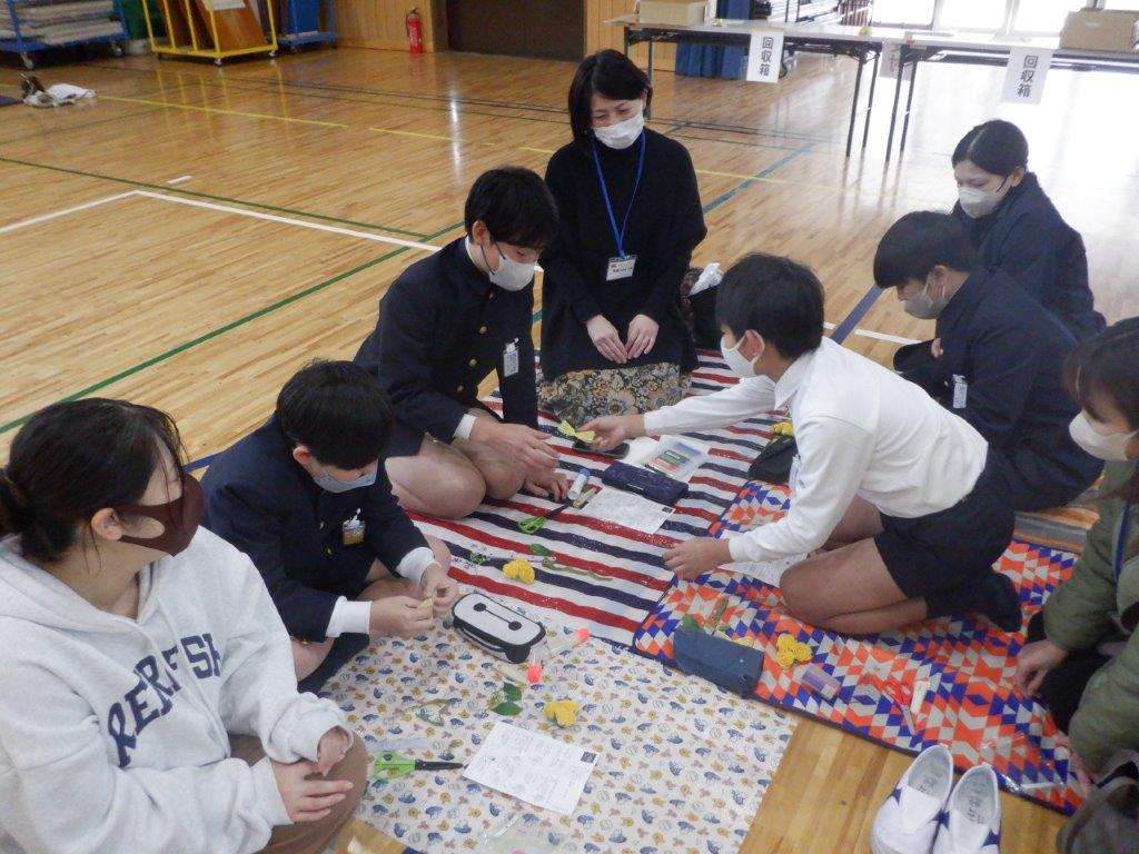 今年も,卒業式の時に胸に飾るコサージュを作りました。