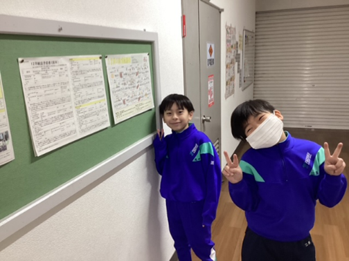 朝、給食室の前で献立表を熱心に見つめている子どもがいました。