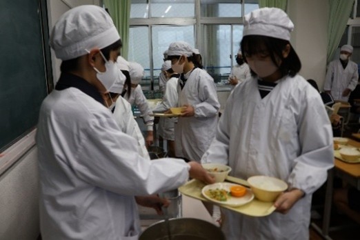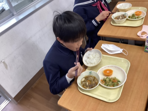 そしてお待ちかねの給食時間!今日のメニューは、特別に提供された山口県産イノシシ肉を使った「イノシシ肉のすき焼き風煮」です。
