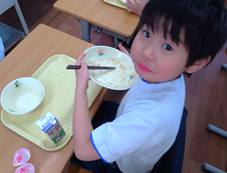 いよいよ水曜日からは、1年生の給食もスタートします! 初めての小学校の給食に、少しドキドキして不安な子もいるかもしれませんが、おいしいごはんとクラスのお友達との時間を、ぜひ楽しんでほしいと思います。