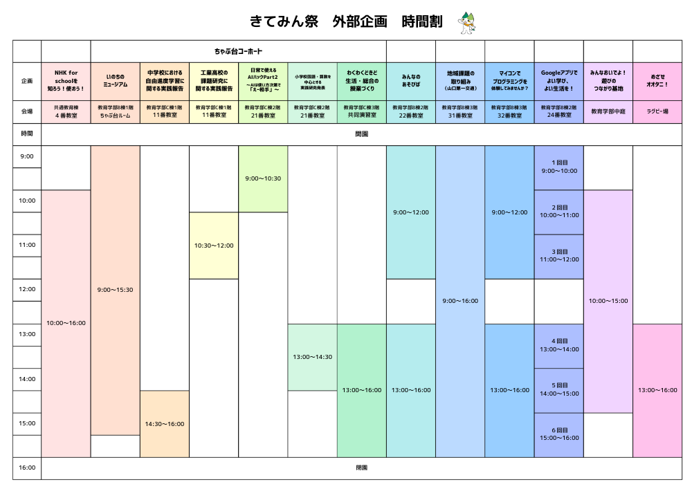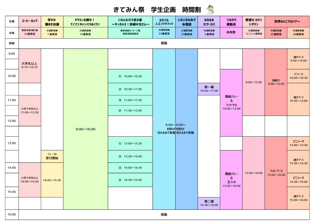 - 9:00 「きてみん祭」始まりました。たくさんの皆様のご来場お待ちしております。