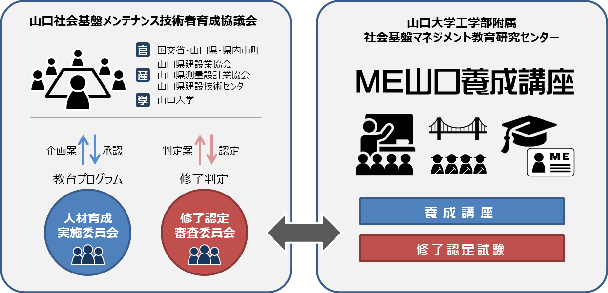 本養成講座を受講し,修了認定試験に合格すると,国交省登録資格である「社会基盤メンテナンスエキスパート山口(ME山口)」に認定します.